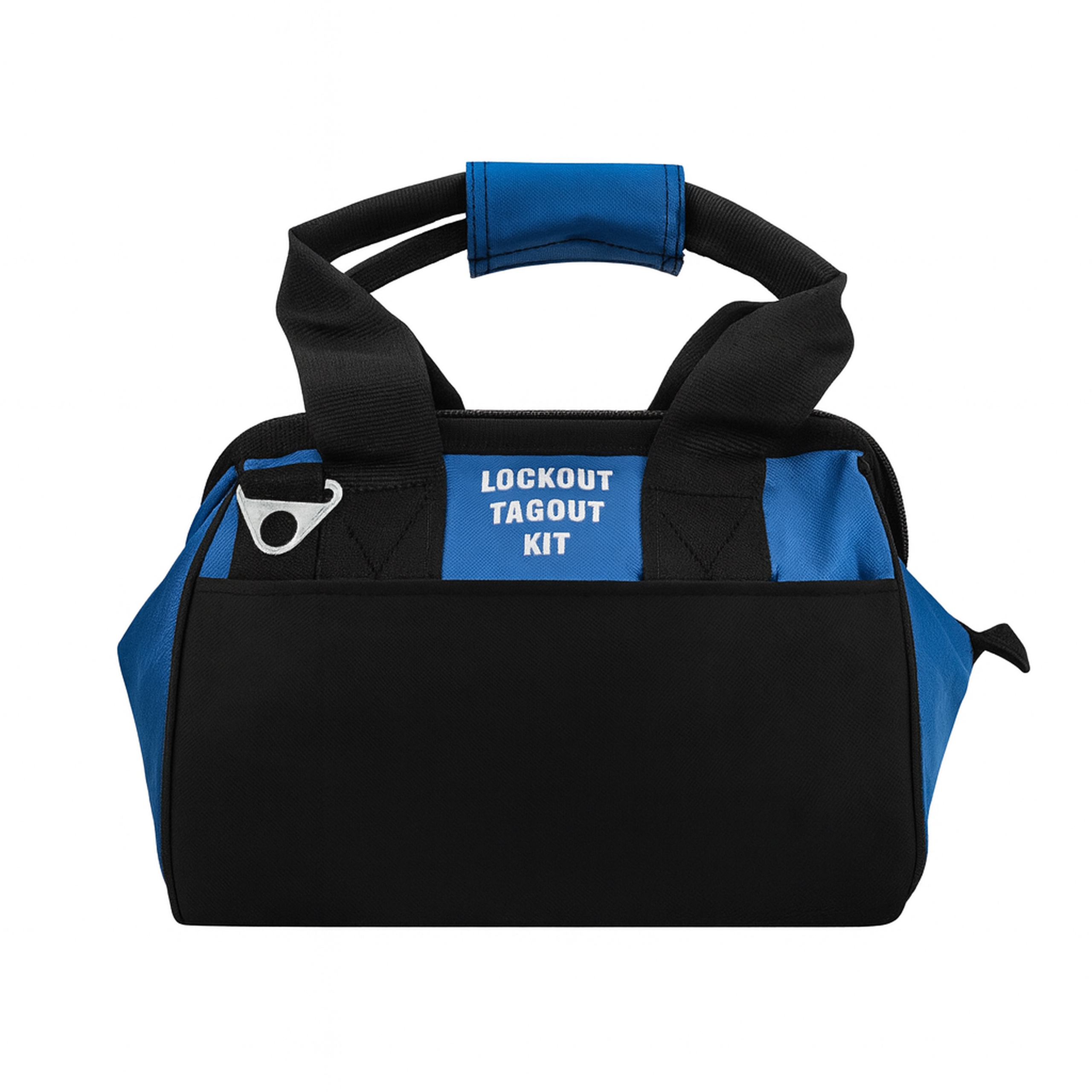 Front torby posiada wyraźne oznaczenie “Lockout Tagout Kit”, co pozwala łatwo zidentyfikować zestaw bezpieczeństwa na terenie zakładu. - Wytrzymała konstrukcja