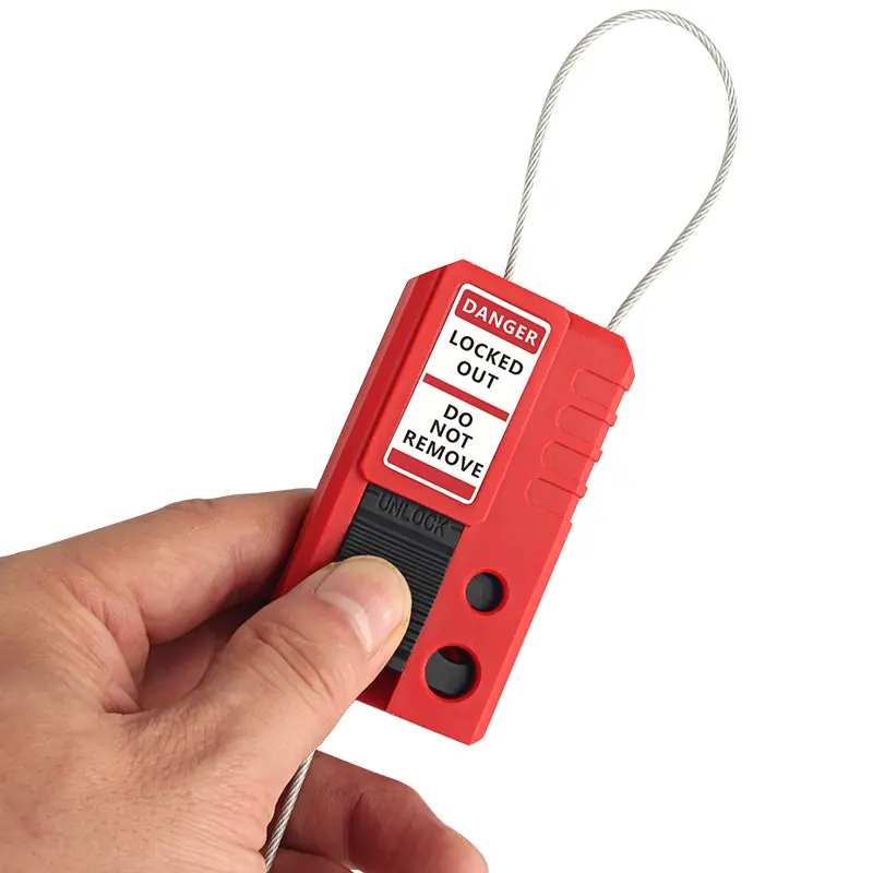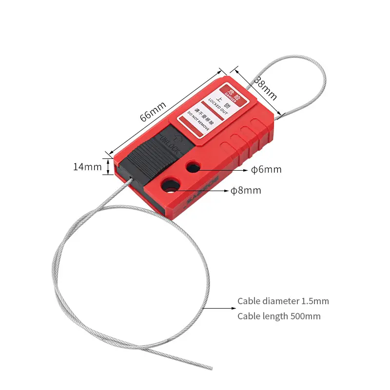 Kompaktowa, przemysłowa blokada kablowa zaprojektowana z myślą o procedurach LOTO (Lockout/Tagout) — idealna do izolacji źródeł energii i zabezpieczania zaworów, wyłączników lub małych urządzeń w zakładach produkcyjnych, serwisach i instalacjach przemysłowych.