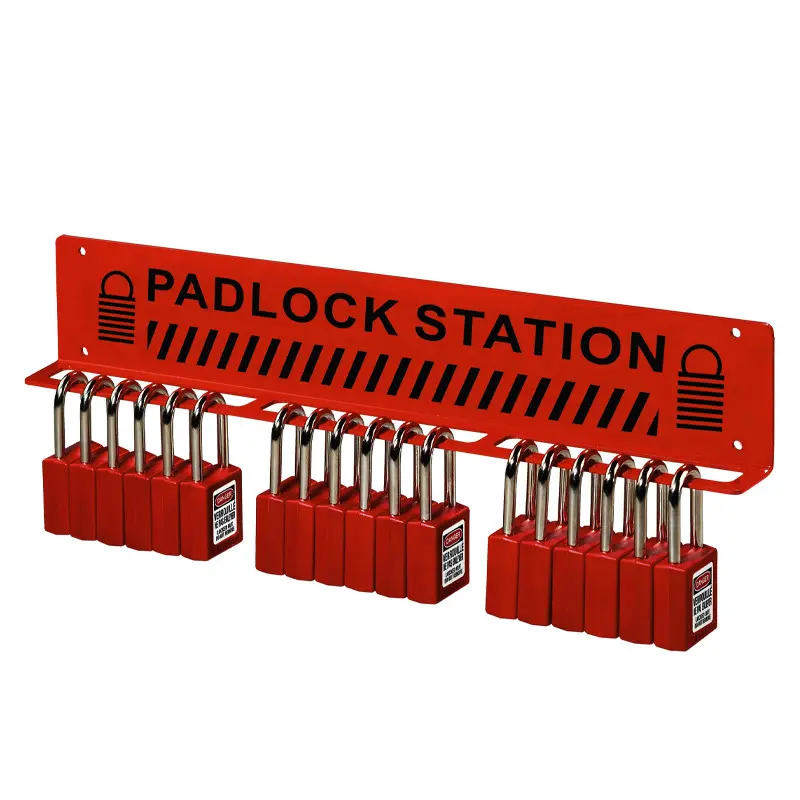Stojak na kłódki bezpieczeństwa – solidne rozwiązanie do organizacji procedur Lockout/Tagout w Twoim zakładzie. Wykonany z wytrzymałej stali malowanej proszkowo, dostępny w czterech rozmiarach pomieszczających od 5 do 20 kłódek. Zawiera etykiety w języku angielskim. Idealny do zarządzania bezpieczeństwem w obiektach produkcyjnych i przemysłowych.