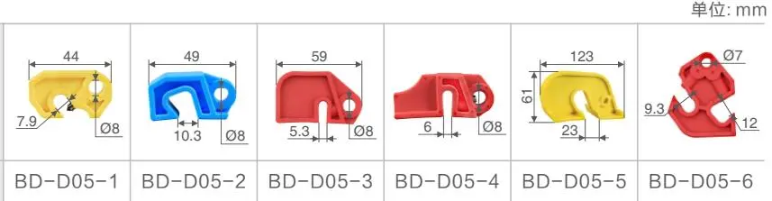 | BD-D05-6 | Nadaje się do wyłączników miniaturowych o szerokości rączki ≤9,3 mm wyłączniki automatyczne średniej wielkości o szerokości uchwytu ≤12 mm |
