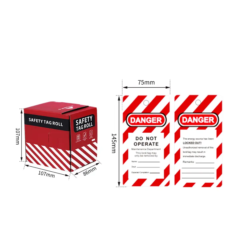 Praktyczne zawieszki bezpieczeństwa LOTO na rolce (200 szt.) wykonane z trwałego materiału. Łatwe do odrywania, odporne na uszkodzenia i przystosowane do oznaczania maszyn oraz urządzeń podczas prac serwisowych i konserwacyjnych.